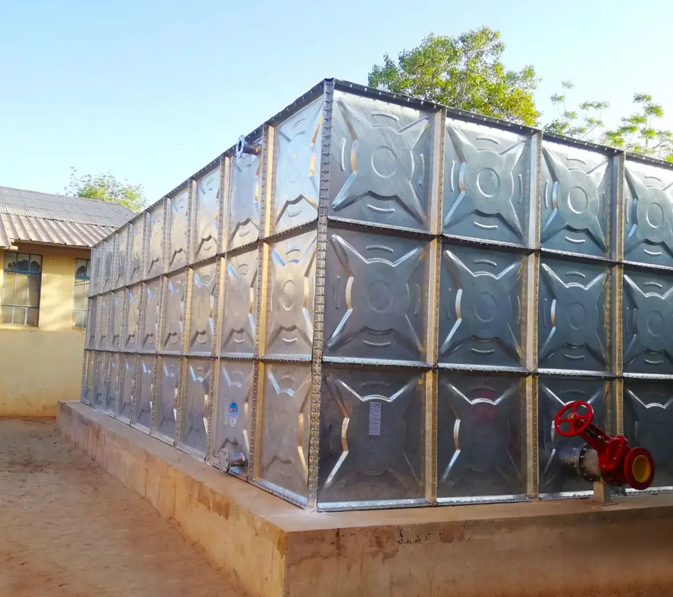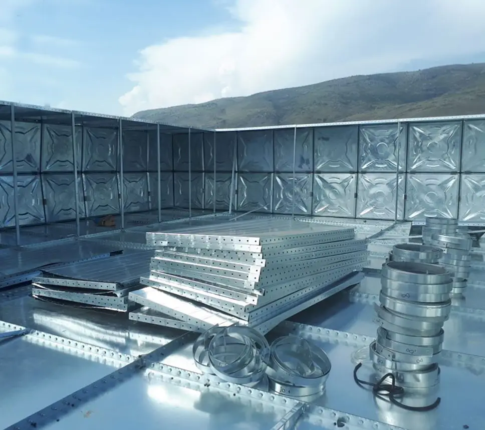 Galvaniz Su Deposu sıcak daldırma galvaniz sac (ST 37) malzeme kullanılarak yüksek basınçlı preslerde form verilmiş saclardan modüler parçalar halinde üretilmiş su deposu ve su muhafaza tanklarıdır.